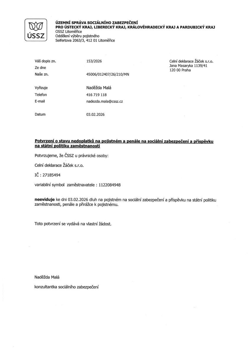 POTVRZENÍ ÚŘADŮ O BEZDLUŽNOSTI A VYDANÁ OSVĚDČENÍ AEO